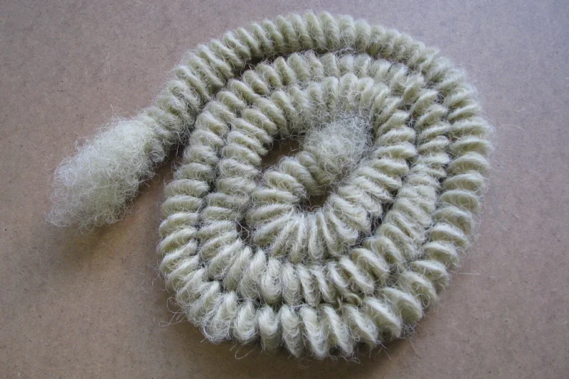 Strong elasticity but only a bit of softer than the horsetail hair, eminently siutable as filling material for pillows and topper.